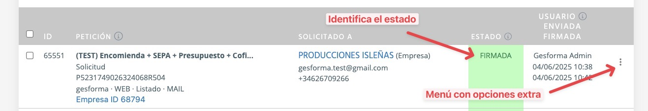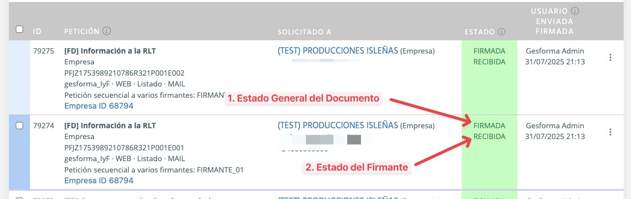 - Estado General: ¿Está el documento terminado? (Solo pondrá "Firmada" cuando TODOS hayan firmado).