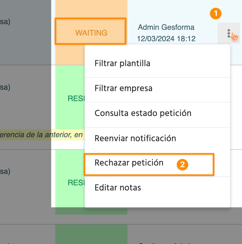 - En el menú de acciones (...), selecciona "Rechazar petición".