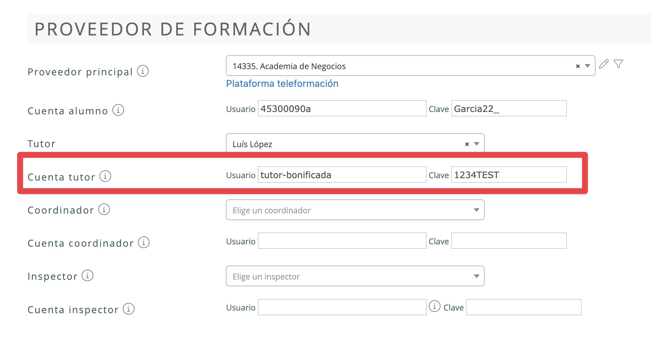 Nos ponemos en contacto para indicarte los datos de acceso al próximo curso que vas a tutorizar.